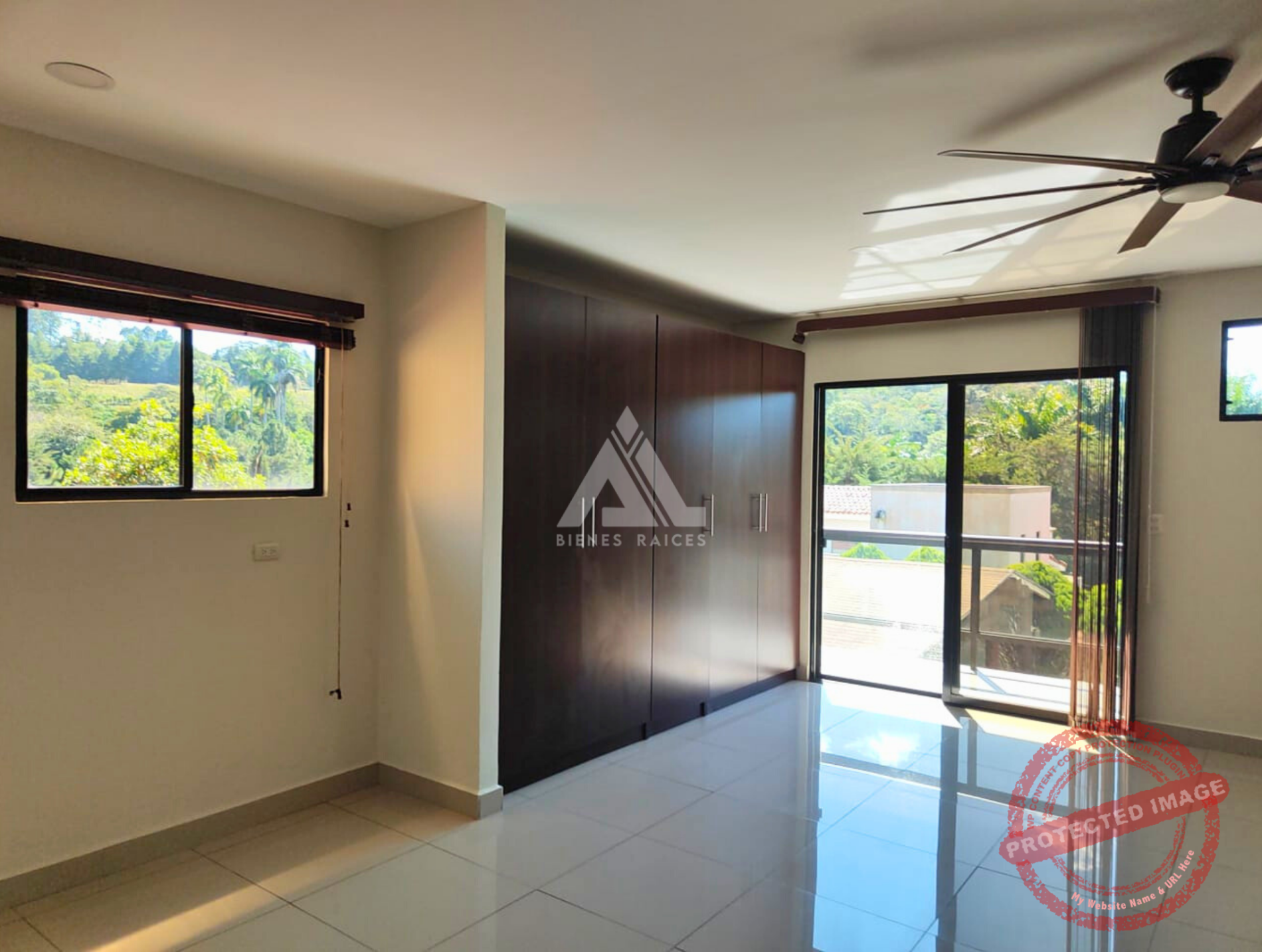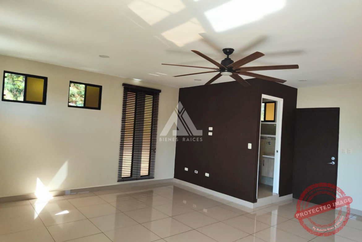 Amplia habitación con baño completo, amplio closet y terraza con vista a áreas comunes y pinares.