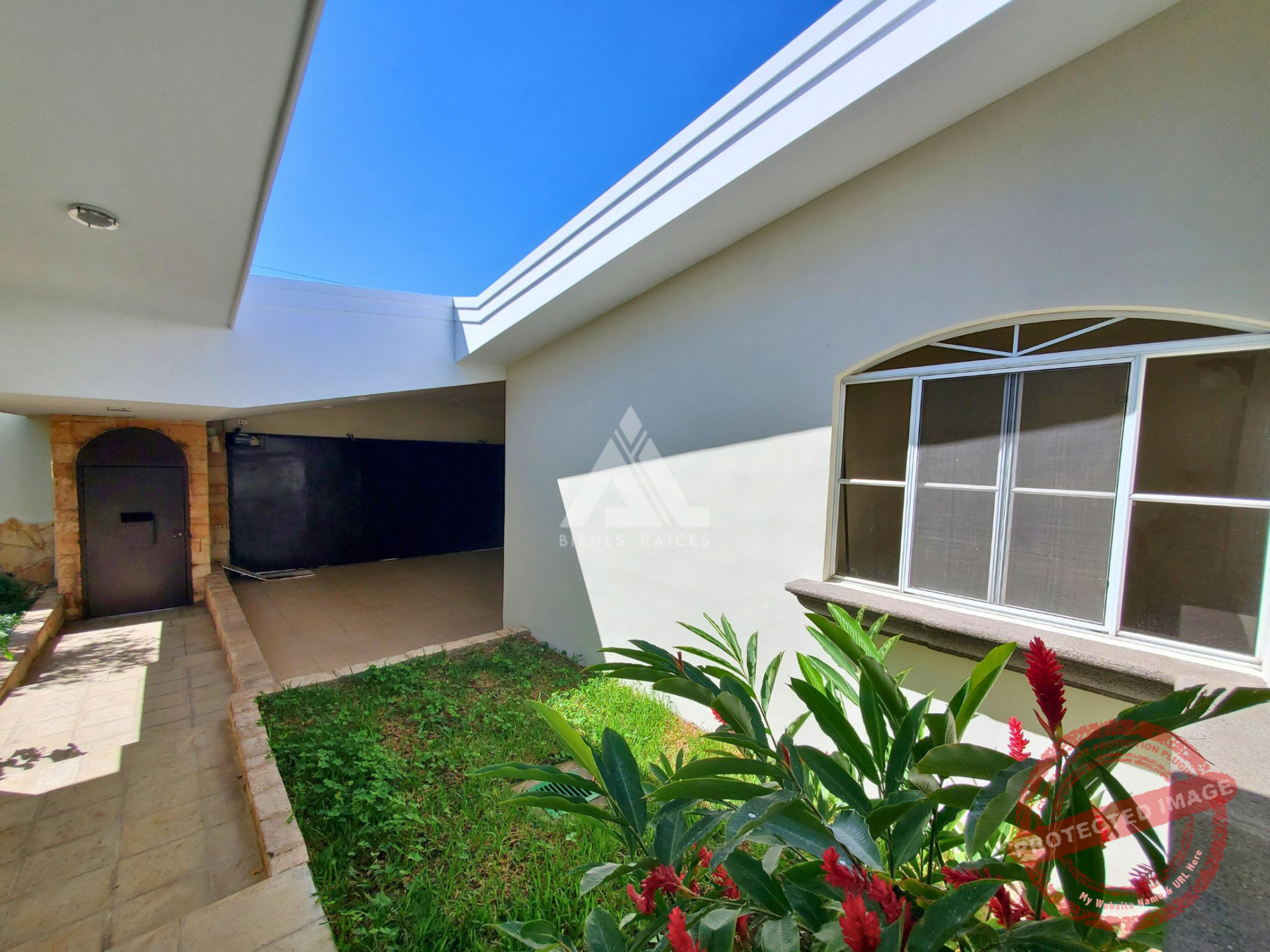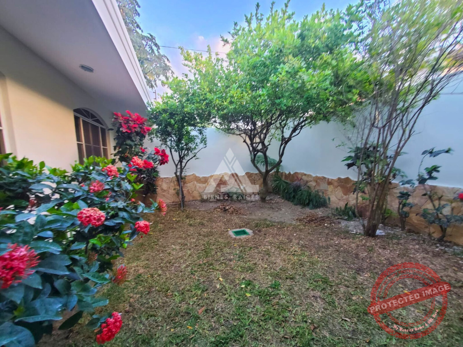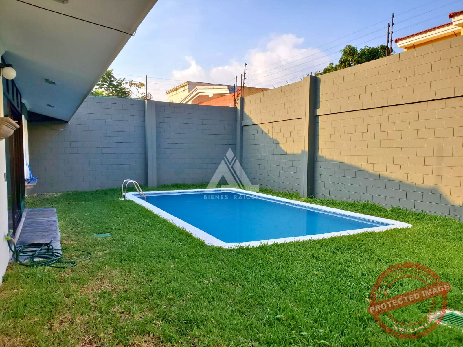 – Jardín con piscina